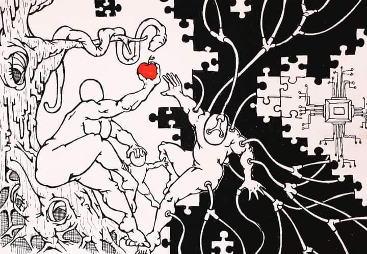 – Todos sabemos por qué estamos aquí, vamos a fusionar por primera vez la mente de dos personas con el tejido neural de una IA. Vosotros, – prosigue mientras señala a WE1 y a XV3 con sus dos manos, como si fueran a recibir la Palma de Oro en el Festival de Cannes – nuestros Adán y Eva, vais a ofrecernos la oportunidad de emular a Dios y recrear el Paraíso; viajar hasta los instantes previos a ser expulsados, dos segundos antes de que Eva moridera la manzana; vamos a situarnos ahí y vamos a recuperar la inmortalidad. – En la sala atruenan los aplausos de los novecientos empleados de Enoc, de los cuatrocientos familiares invitados y de los doce ministros de defensa cuyos estados financian el proyecto; de los setenta y dos periodistas acreditados sólo aplauden una docena, suficientes para ayudar a que el proyecto transite desde la pura inversión en nanotecnología e IA, de grupos asociados a la OCDE, BEI y el FMI, a una misión multidisciplinar tripulada por la ONU para salvar a la humanidad de una segura y triste extinción.
